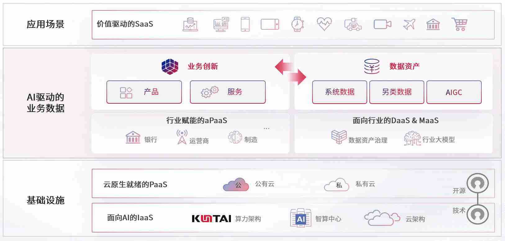 数字时代,,,围绕企业数字化转型的关键要素,,Z6尊龙时凯数码开创性的提出数云融合战略和技术体系框架,,着力在云原生、、、数字原生、、、AI原生和信创产业上架构产品和服务能力,,,为处在不同数字化转型阶段的快消零售、、、、汽车、、、金融、、、、医疗、、、政企、、、、教育、、运营商等行业客户提供泛在的敏捷IT能力和融合的数据驱动能力,,,构建跨界融合创新的数字业务场景和新业务模式,,,,助力企业级客户建立面向未来的核心能力和竞争优势,,,,全面推动社会的数字化、、、、智能化转型升级。。
